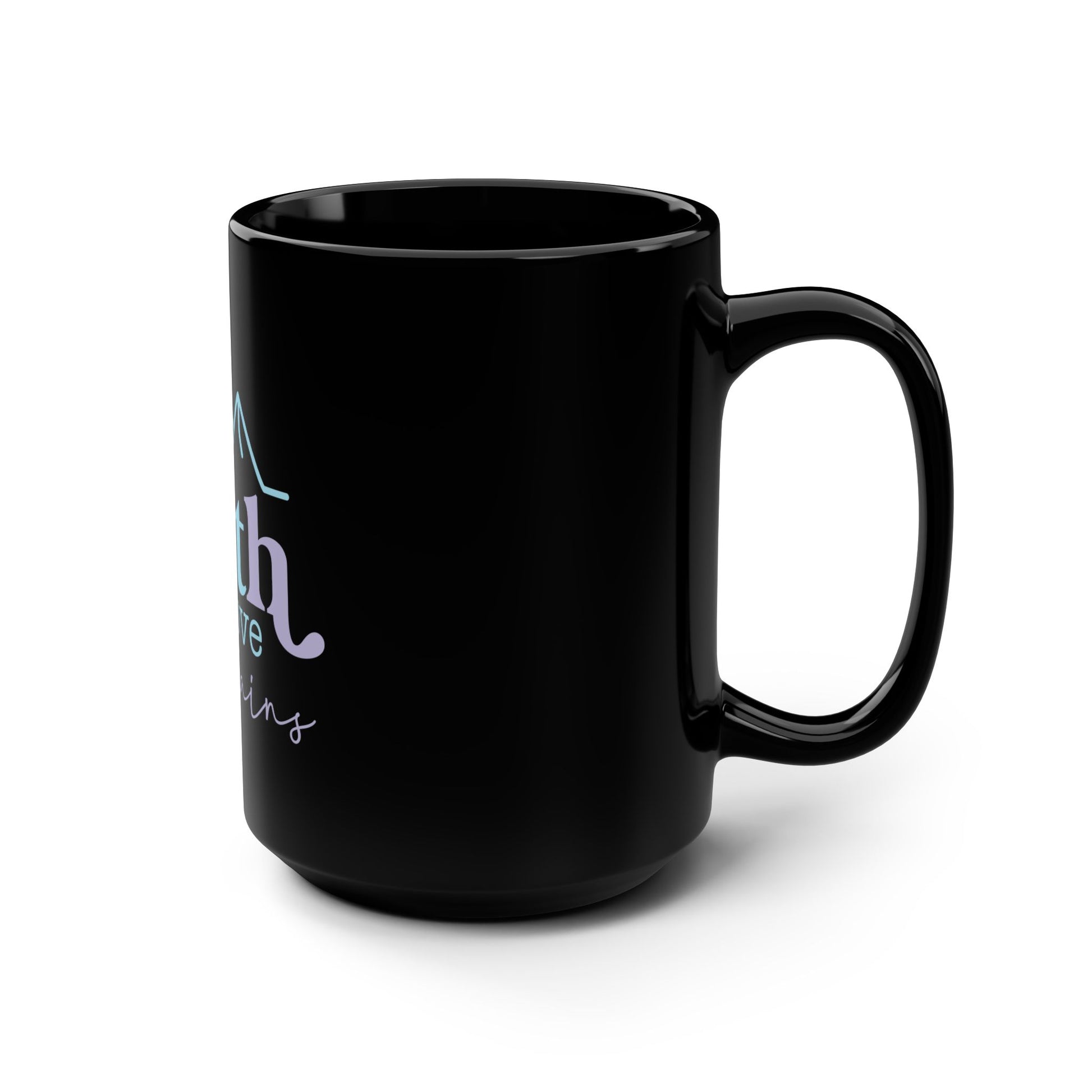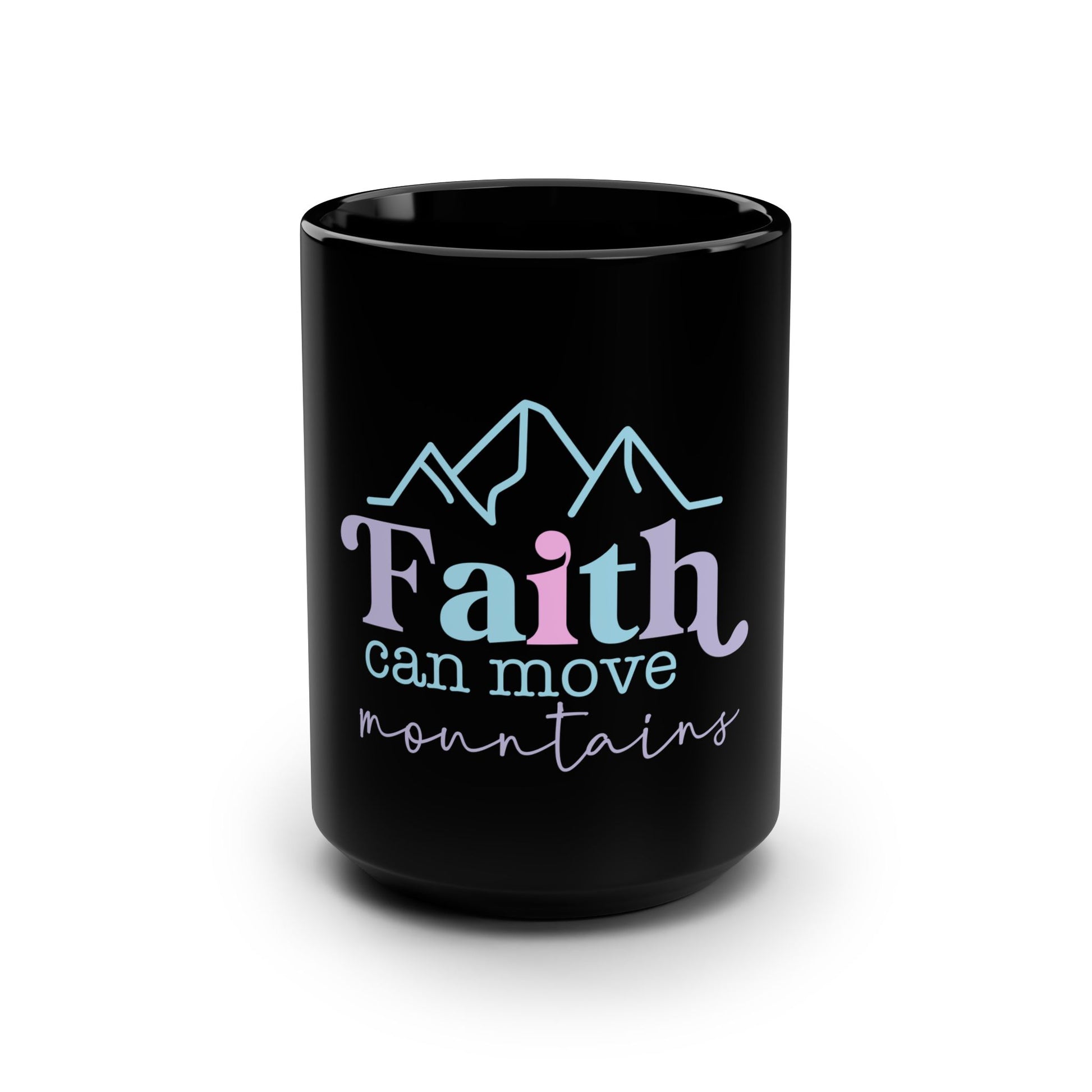 Sip something warm and steady from this glossy black 15oz mug that carries a quiet, hopeful message: "Faith can move mountains." The soft pastel lettering and simple mountain line art feel gentle against the deep ceramic, giving the mug a calm, contemplative presence. It’s the kind of cup you reach for on slow mornings, when you need a moment to gather and remember what keeps you going. Durable enough for daily use, the mug holds a generous pour of coffee, tea, or cocoa while the comfortable C-handle lets you cradle it easily. Whether set on a bedside table, cooling beside a laptop, or tucked into a windowsill, it brings a small, steady reminder of resilience and quiet faith.