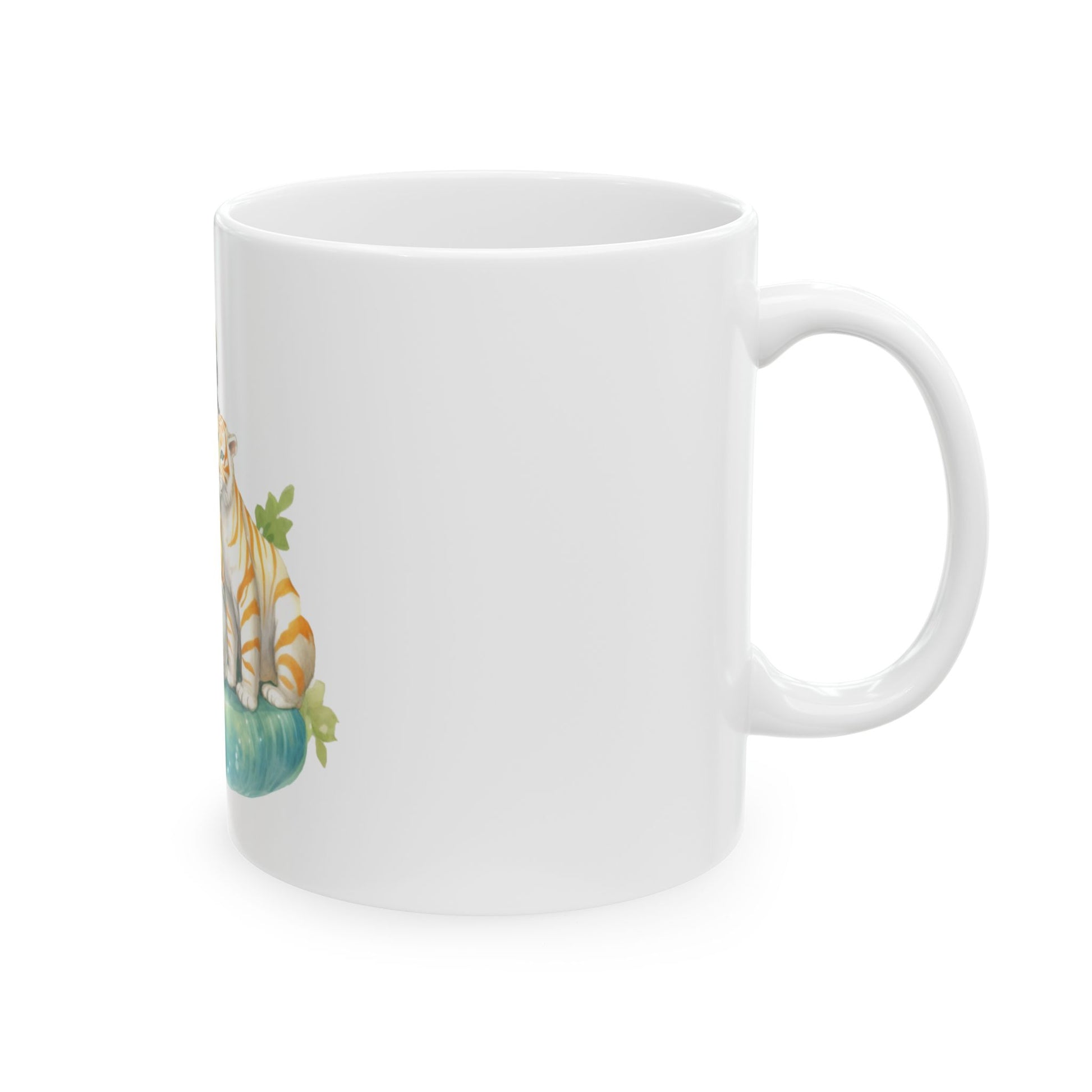 Warm morning light, a quiet corner, and a mug that feels like a little story in your hands. This ceramic mug features a soft, watercolor-inspired illustration of a gentle girl with a striped white tiger curled at her side. The scene brings a calm, whimsical energy to your coffee or tea ritual — an invitation to slow down, breathe, and savor the small comforts. Bright, crisp printing keeps every delicate detail and pastel hue intact. Use it for daily sips at the kitchen table, as a steady companion during late-night sketches, or as a comforting touch on slow weekend mornings when you want something pretty and soothing nearby.