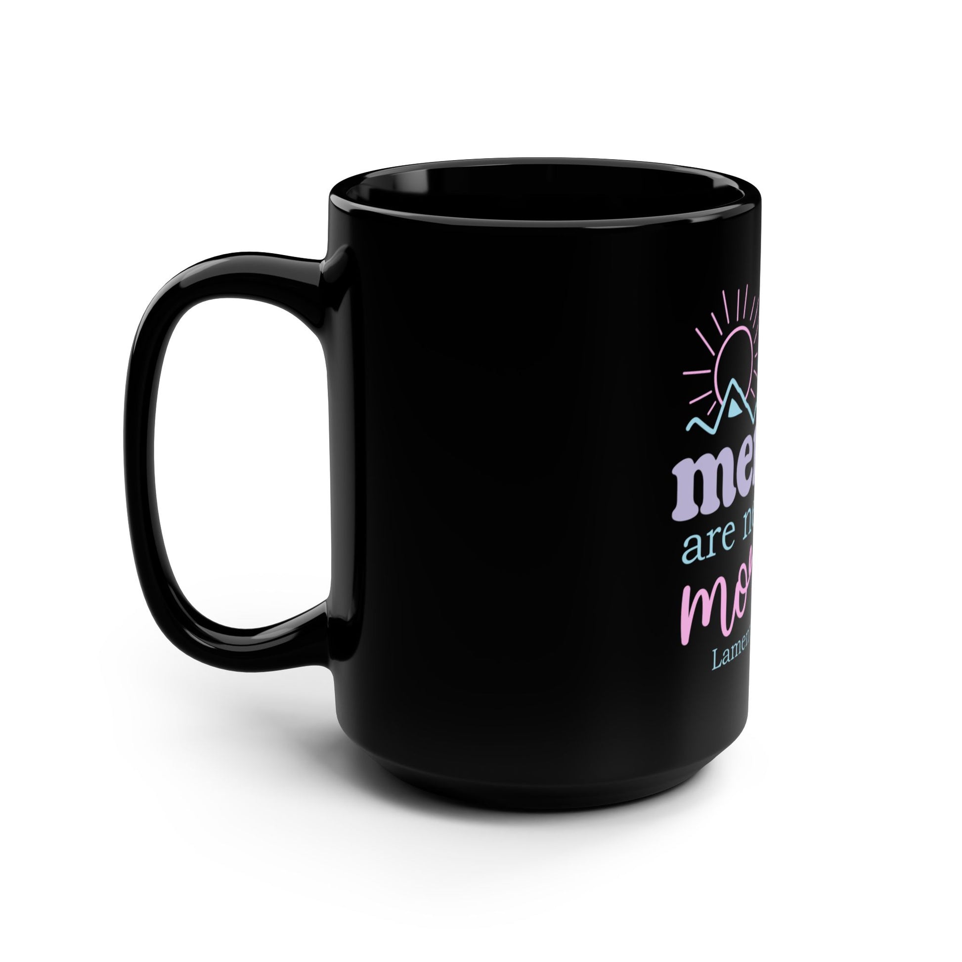 Start your morning with a gentle breath of hope. This 15oz black ceramic mug carries a soft pastel design that reads “His mercies are new every morning” (Lamentations 3:23) beneath a sunrise-and-mountains motif. The glossy black background makes the lettering pop while the roomy cup and C-shaped handle invite a slow sip. It’s the kind of mug that anchors a quiet routine, holds your favorite hot drink, and reminds you of grace between busy moments. Thoughtful and calm, it complements a cozy kitchen, bedside tray, or a peaceful corner where prayer and reflection begin the day.