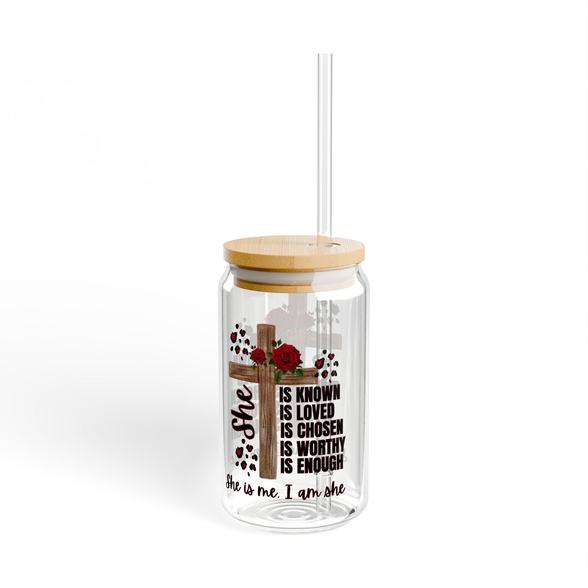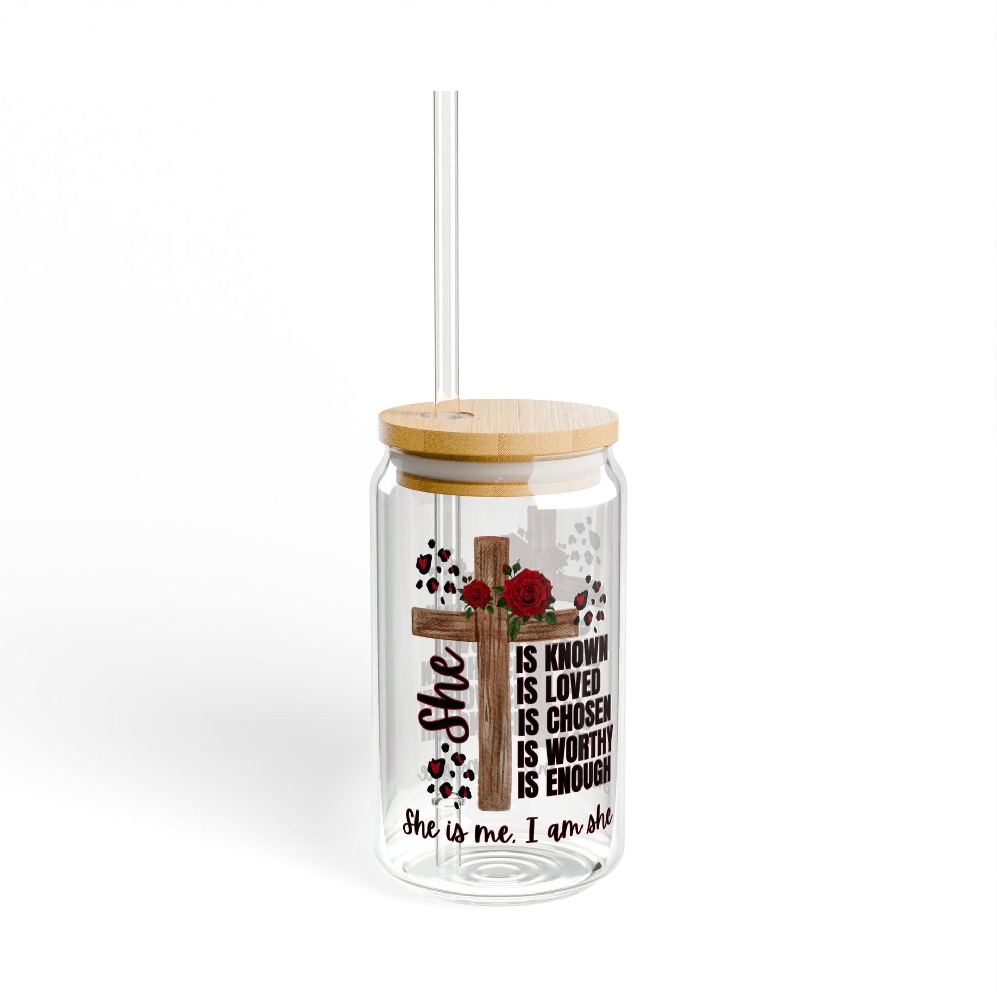 Inspirational Sipper Glass - 16oz, Motivational Drinkware, Perfect Gift for Her, Encouraging Quotes Tumbler, Self-Love Sipper (RED)