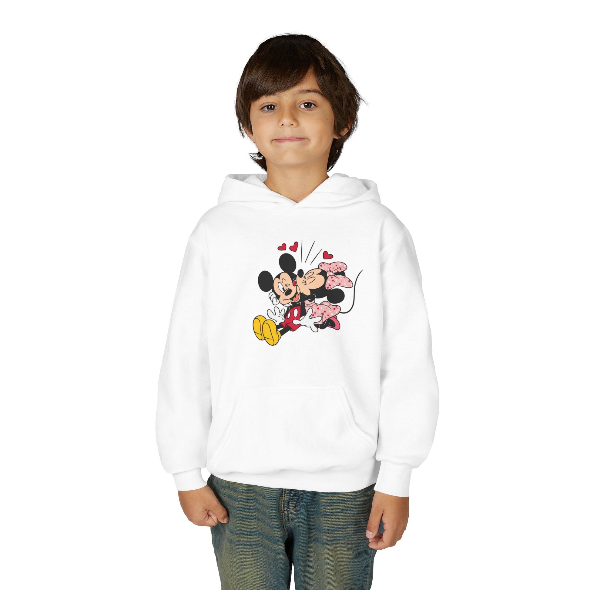 Kids Mickey & Minnie Heart Hug Hoodie — Youth Disney Couple Sweatshirt
