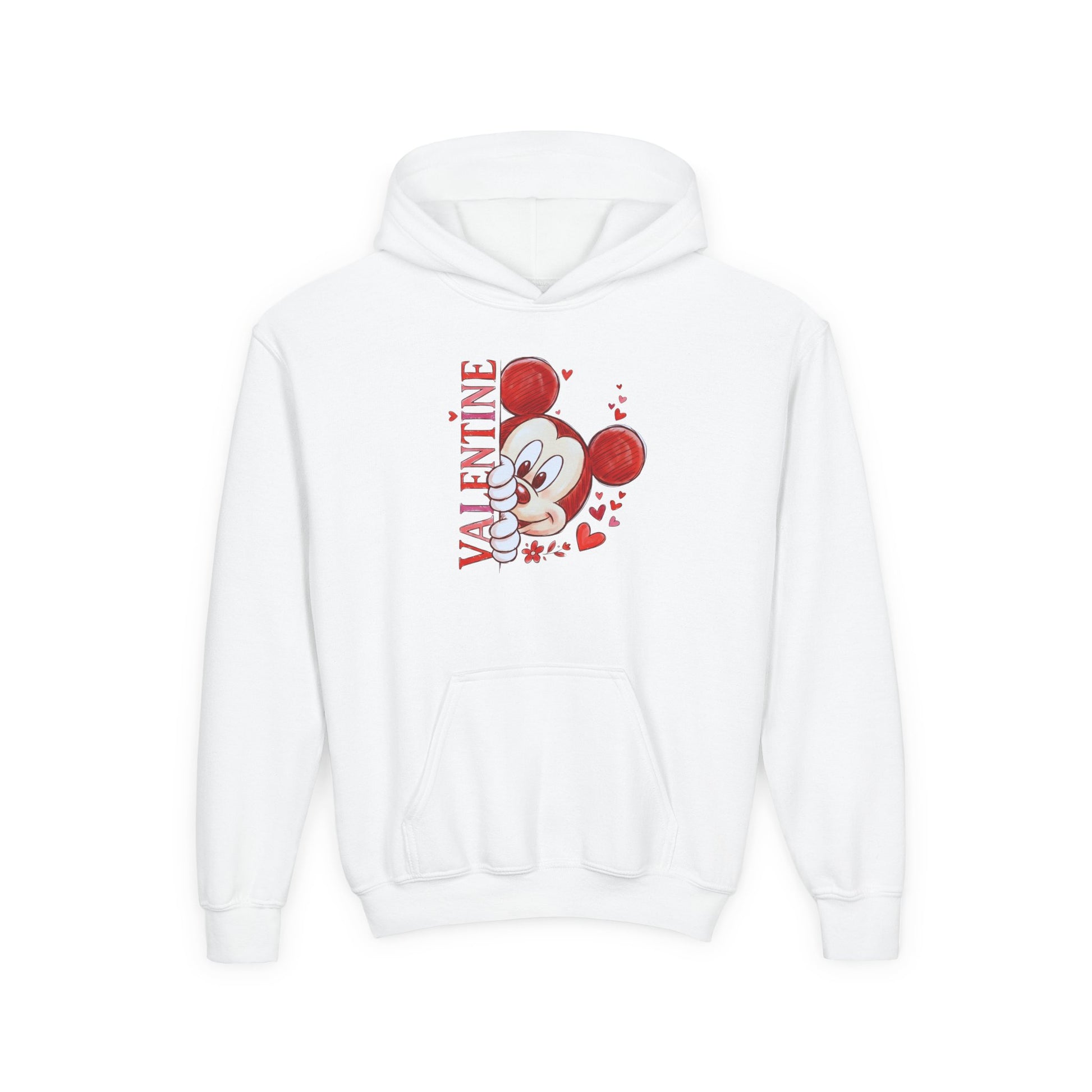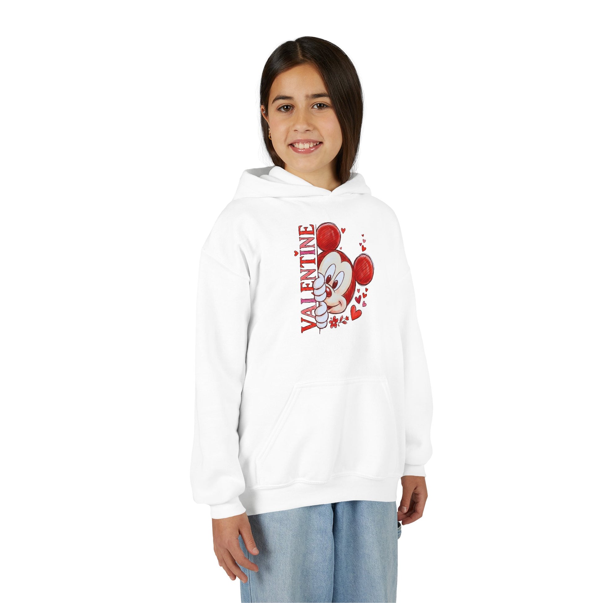Valentine’s Cute Mouse Youth Hoodie - 'Valentine' Heart Graphic