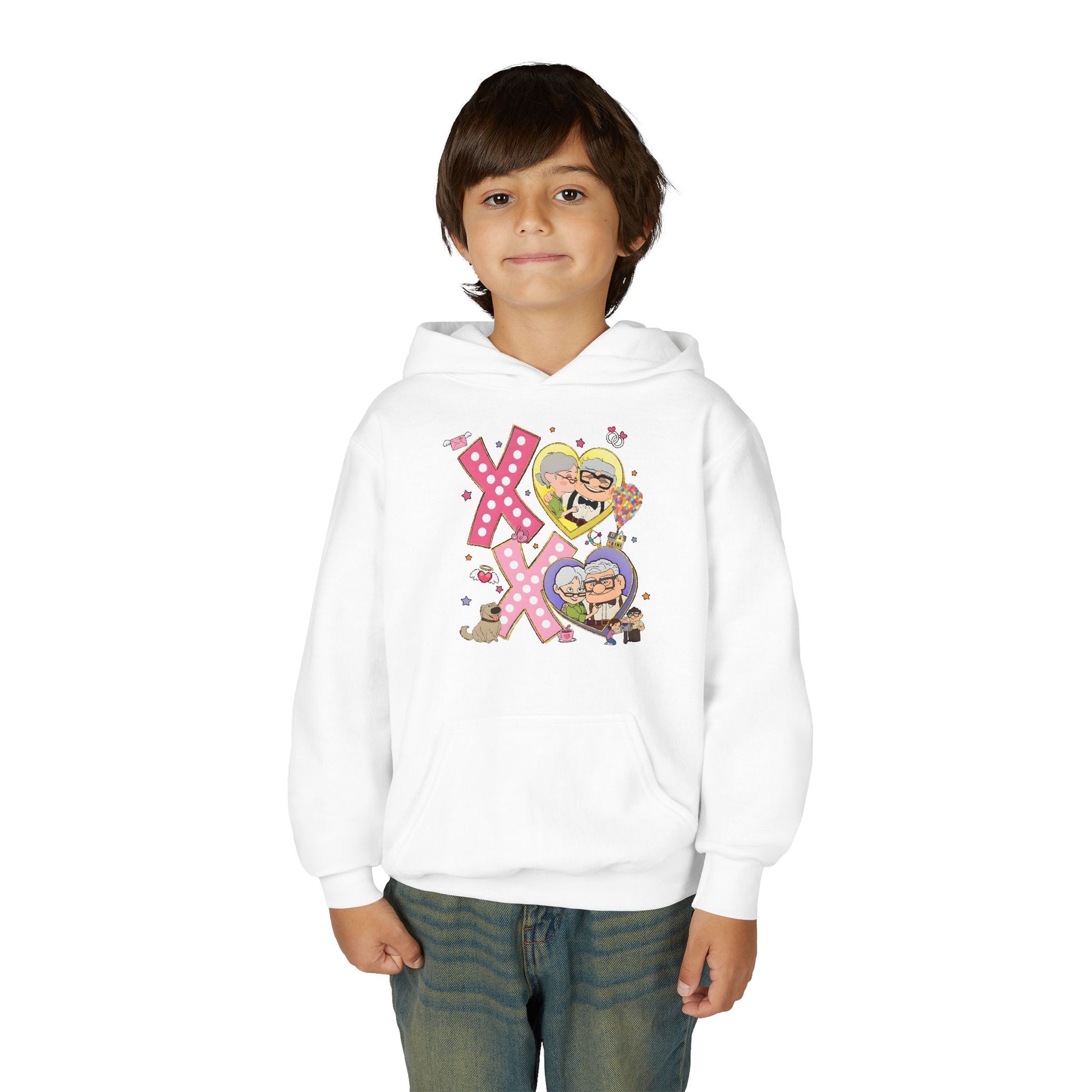 Youth Hoodie — Cute Kisses & Hugs Cartoon Hearts Kids Pullover